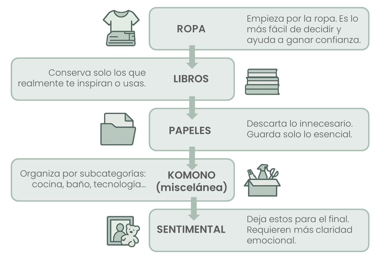El orden no es solo una cuestión de limpieza: es una herramienta poderosa para transformar tu vida. Ordenar con intención te permite quedarte con lo que realmente te hace feliz y soltar lo que ya no necesitas. Hay que ordenar por categorías, con método y conciencia, ganas claridad mental, bienestar emocional y equilibrio en tu día a día.
